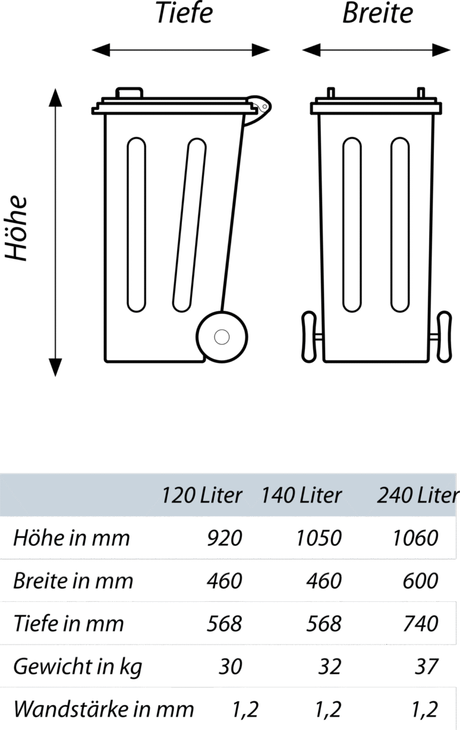 Großmüllbehälter aus Stahl 120 / 240 L